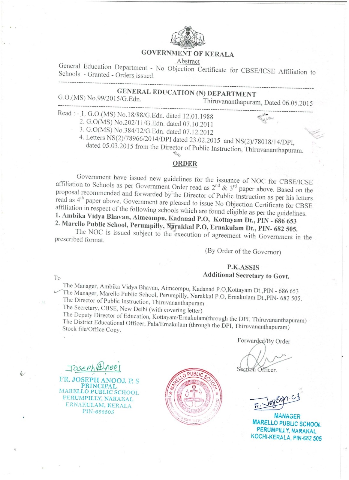 Marello Public School is a part of the Marello Campus of Studies under the management of the Catholic Priests of the Oblates of St Joseph. It is located at Perumpilly, Narakal, in the Island of Vypeen, about 12 kms from the city of Kochi in Kerala. Set in an idyllic surroundings of 5 acre green patch of original land that still owns its peaceful serenity with trees and palm groves touching upon Kerala’s own traditional water ponds and little canals.Joseph